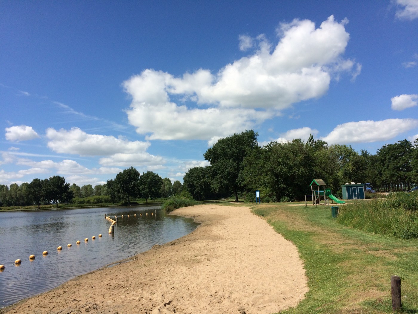 Let bij erg warm weer wel goed op de borden, de kans op blauwalg is dan groot en dus onverstandig om met kinderen het water in te gaan.